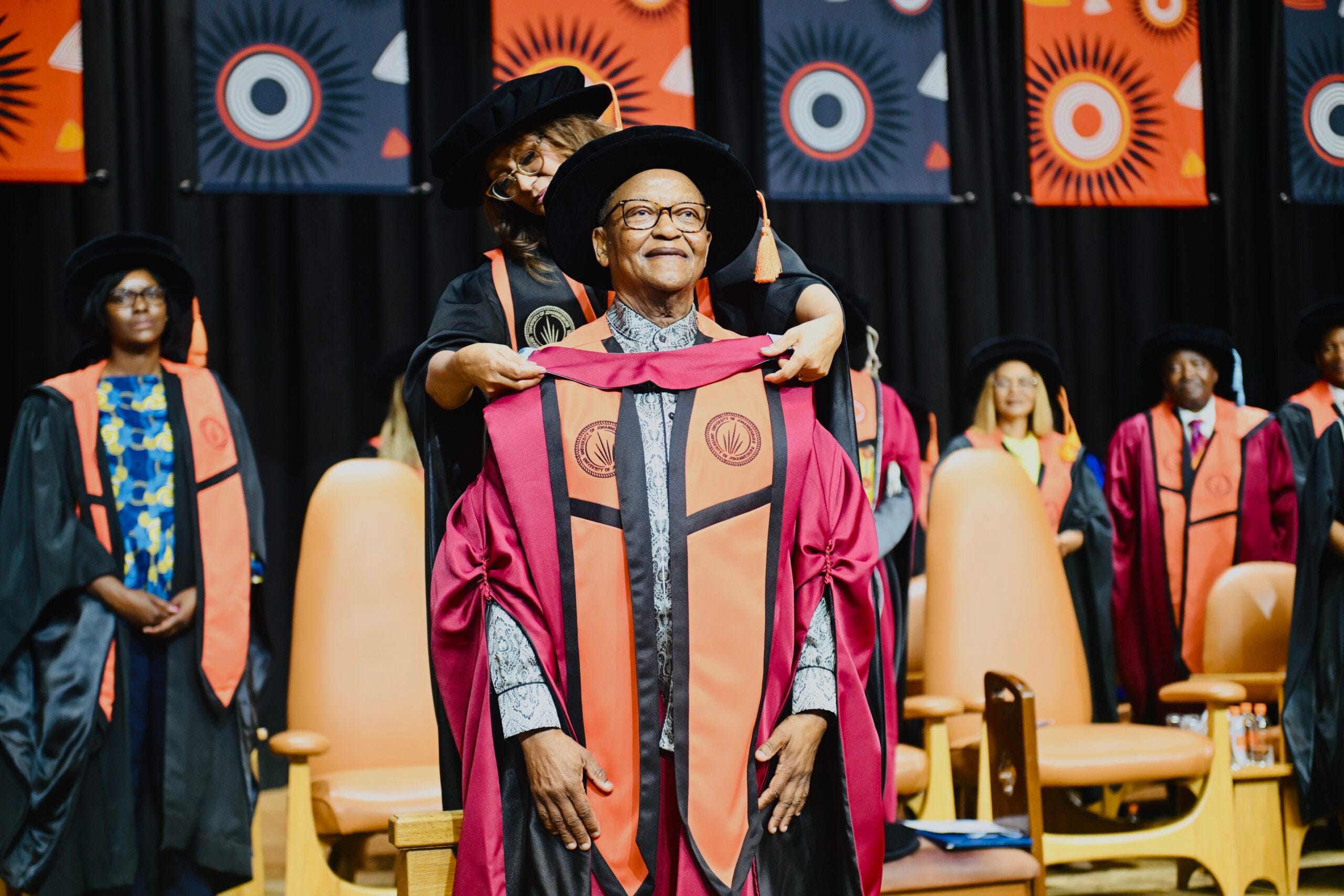 In her role as functionary Vice-Chancellor for the ceremony, UJ Registrar Professor Bettine van Vuuren shared how transformative Prof Ndebele’s tenure as Chancellor was for the institution: “His association with the University of Johannesburg has been substantive and enlightening. Professor Ndebele served as Chancellor of UJ for two full terms, providing steady guidance and symbolic leadership during a critical period of growth and consolidation.